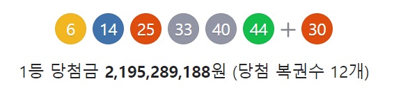 1개당 당첨금은 무려 2,195,289,188원이라고 합니다!
